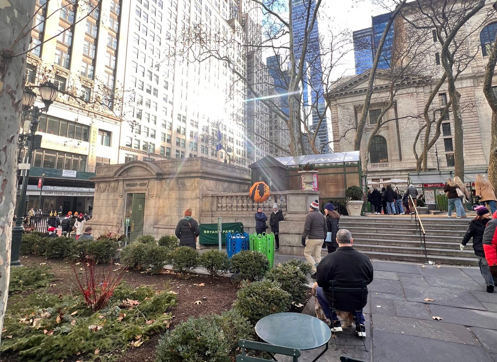 Starting point: Behind the restrooms at Bryant Park. Enter the park from 42nd street. Look for the orange umbrella like in the photo above.